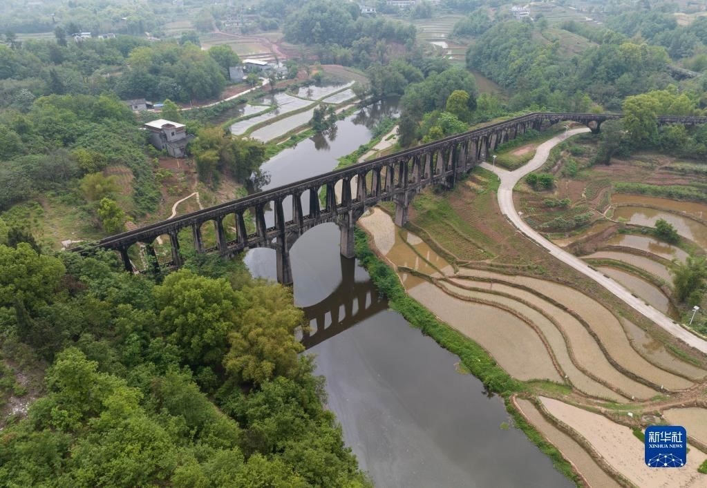 目前,四川省瀘縣正值插秧時節(jié),有“人工天河”之稱的瀘縣引水渡槽越過山丘、穿過農(nóng)田,仍在引水灌溉中發(fā)揮重要作用。