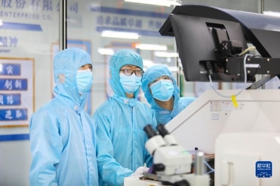 5月4日,青年技術員在重慶平偉實業(yè)股份有限公司無塵生產車間調試芯片生產設備。