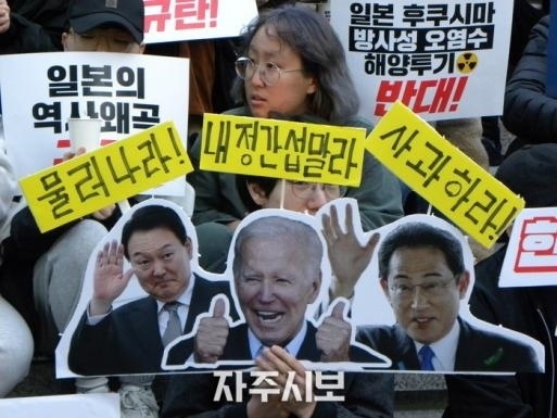 ·岸田訪韓前夕,韓民眾舉行“反日燭光抗議集會”。
