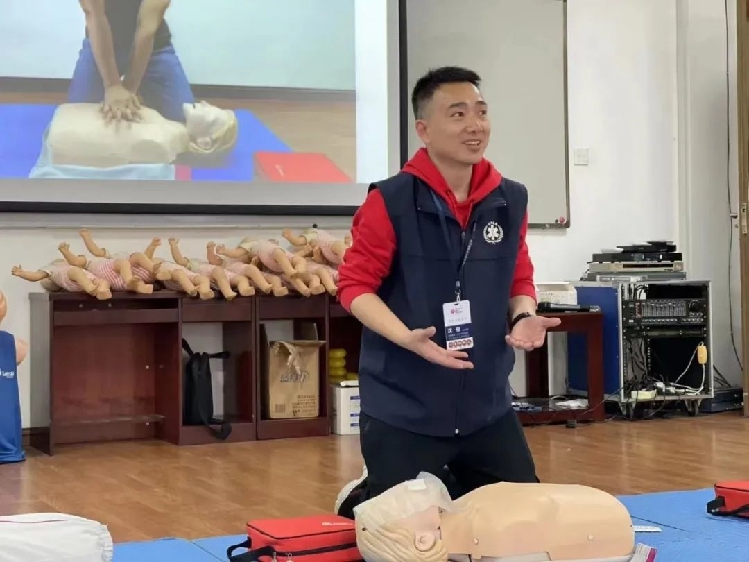 沈俊在救護(hù)培訓(xùn)課上講解知識。浙江省紅十字會供圖