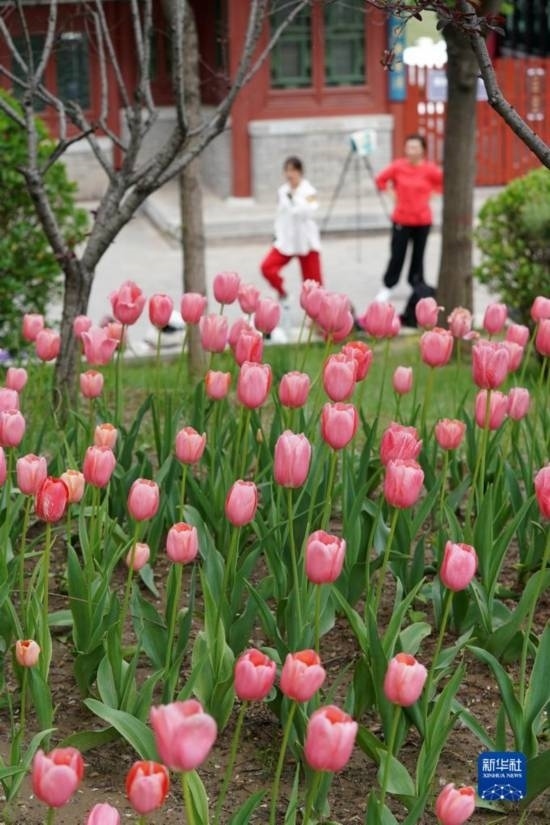 近日,山西省太原市迎澤公園內(nèi)各色郁金香競(jìng)相綻放,吸引游人前來觀花賞景。