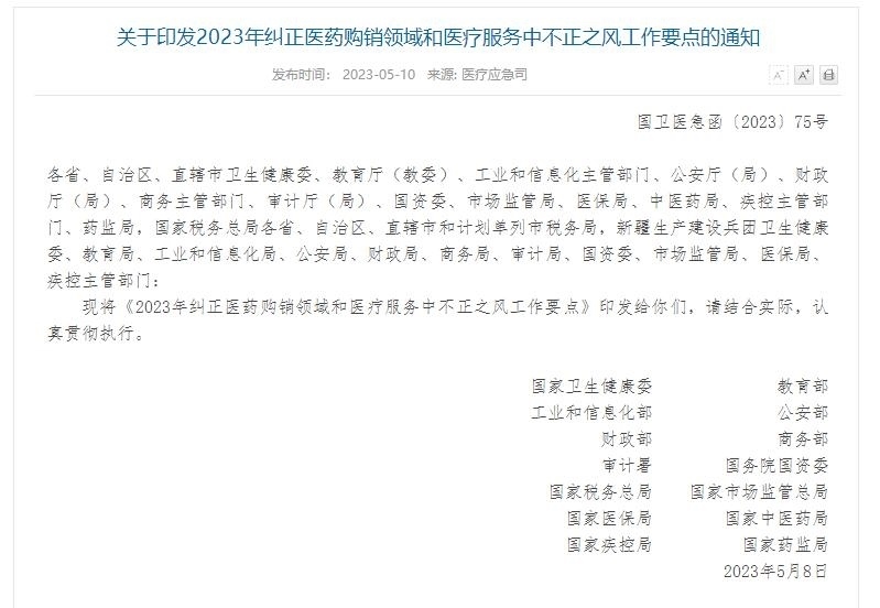 ·14部門聯(lián)合發(fā)文:糾正醫(yī)藥購銷領域和醫(yī)療服務中不正之風。
