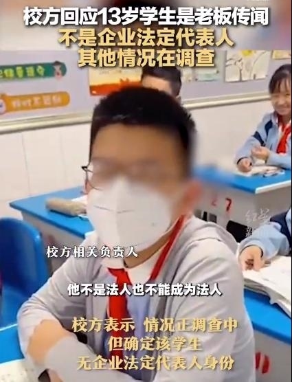 ·校方回應網傳13歲學生是公司老板: 不是企業(yè)法定代表人,其他情況在調查。