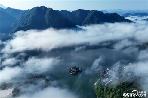 2023年5月18日,重慶酉陽縣酉水河鎮(zhèn)河灣山寨,晨霧下的酉水河風(fēng)光。