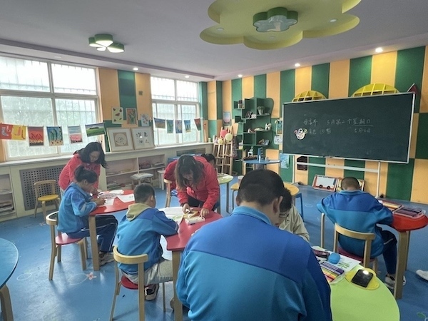 作為一所九年義務(wù)教育段公辦特殊教育學(xué)校,除國家課程外,學(xué)校重點開設(shè)了如情景醫(yī)院、情景銀行、情景超市、感統(tǒng)課程、冰壺課程、手鼓課程、語言訓(xùn)練課程等特色課,致力于提高殘疾兒童的自理能力,為殘疾兒童走向社會打好基礎(chǔ)。此外,學(xué)校積極探索醫(yī)教結(jié)合機制,協(xié)調(diào)相關(guān)醫(yī)院提供免費診療活動,并堅持送教上門,幫助特殊兒童在家也能學(xué)知識、促康復(fù)、練技能。