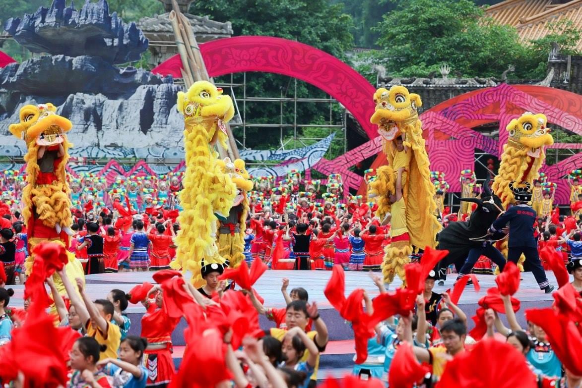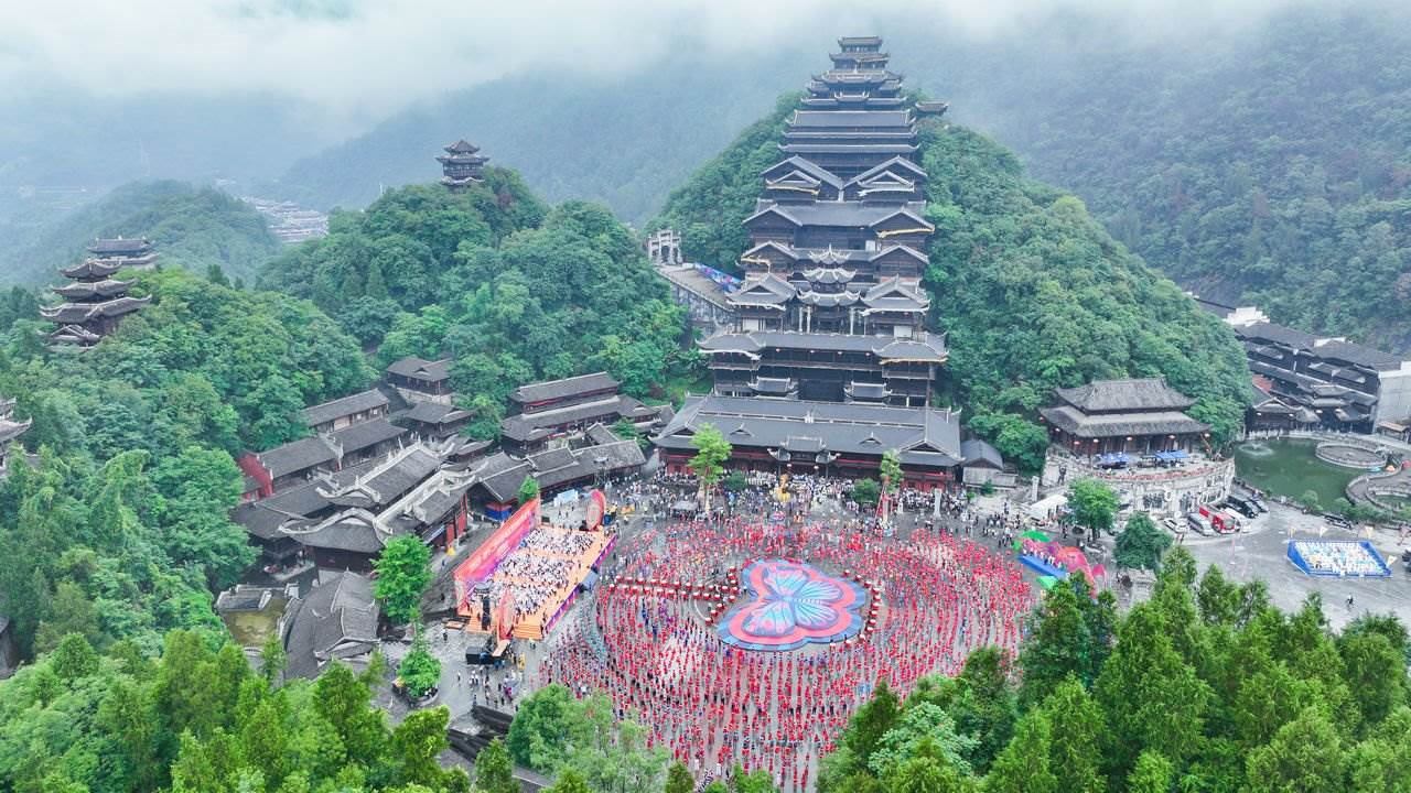 5月26日,2023第十二屆中國烏江苗族踩花山節(jié)在重慶彭水拉開序幕。上萬名苗鄉(xiāng)兒女身著節(jié)日盛裝聚集在這里,共跳踩花山、齊唱“嬌阿依”,現(xiàn)場一片歡樂的歌舞海洋,場面壯觀。