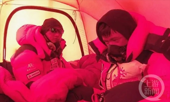 當(dāng)?shù)貢r間5月18日晚8點,在珠峰海拔8450米處,范江濤發(fā)現(xiàn)了一名倒地登山者——右手沒有手套,已凍得發(fā)黑,左手只有一只抓絨手套;身旁沒有其他人。范江濤猜想,這是一名被夏爾巴放棄救治的攀登者。經(jīng)查看,其氧氣已用完,臉部已覆蓋薄冰,手已凍傷,生命體征微弱。