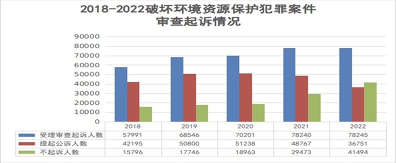 據(jù)介紹,五年來,檢察機(jī)關(guān)受理審查起訴破壞環(huán)境資源保護(hù)犯罪案件209957件353223人,辦理生態(tài)環(huán)境和資源保護(hù)領(lǐng)域民事檢察監(jiān)督案件498件、行政檢察監(jiān)督案件62875件、公益訴訟案件394894件,辦案數(shù)量均顯著上升。