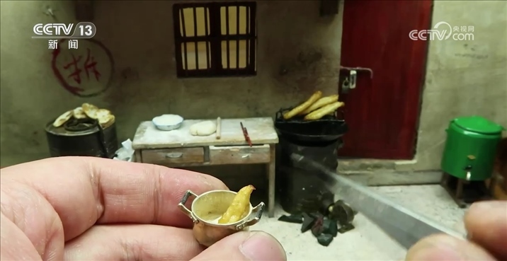 趙培藝:有一位網(wǎng)友外婆腿腳不好,沒(méi)有辦法回老家。然后他跟我說(shuō),能不能給他復(fù)原一個(gè)小的,給她放在床頭上讓她看著,大概拍了二十幾張照片,然后測(cè)量數(shù)值是測(cè)了大概三四次,他原本是什么材質(zhì),我就盡量去用什么材質(zhì),例如小的瓷磚,我都是去廠里訂的小陶瓷片,像地板之類的,我都是用手工燒的小紅磚去做。想家里了,一歪頭就能看到。