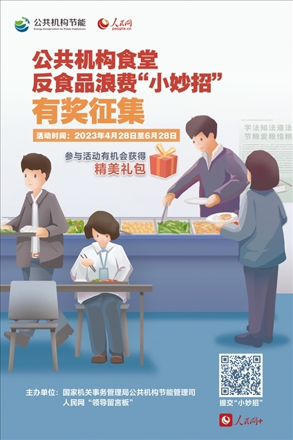 “推出小份菜”“飯菜稱重計(jì)價(jià)”“借助大數(shù)據(jù)合理備餐”……公共機(jī)構(gòu)食堂反食品浪費(fèi),你還有什么“小妙招”?4月28日起,國(guó)家機(jī)關(guān)事務(wù)管理局公共機(jī)構(gòu)節(jié)能管理司、人民網(wǎng)通過(guò)“領(lǐng)導(dǎo)留言板”聯(lián)合推出“公共機(jī)構(gòu)食堂反食品浪費(fèi)‘小妙招’有獎(jiǎng)?wù)骷被顒?dòng),面向全社會(huì)征集黨政機(jī)關(guān)、學(xué)校、醫(yī)院等公共機(jī)構(gòu)食堂反食品浪費(fèi)的妙招、實(shí)招、硬招?;顒?dòng)推出后,各地群眾積極建言獻(xiàn)策,一起來(lái)看看吧!