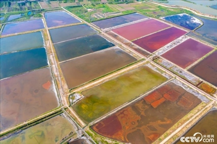 2023年6月14日,山西運城,七彩鹽湖呈現(xiàn)出色彩斑斕的景觀,猶如大地調色板,美不勝收。