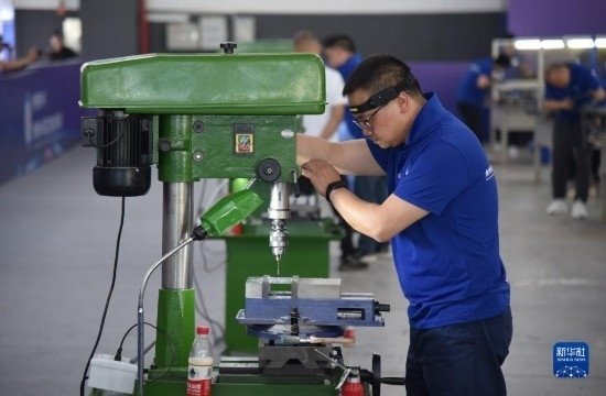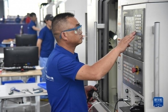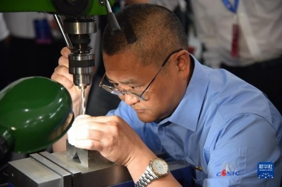 6月27日,參賽技術工人進行數(shù)控銑工技能比拼。