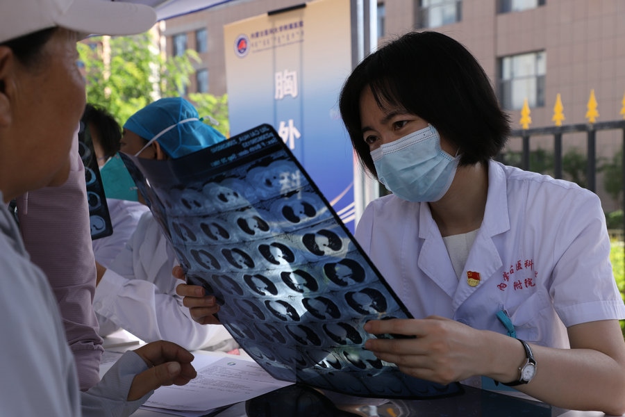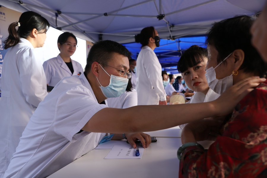 專家們?yōu)榍皝韱栐\的群眾,提供免費的咨詢檢查診療服務,宣傳健康知識,提高群眾對常見病、慢性病的防控意識,以實實在在的方式為老百姓看病就醫(yī)解決實際問題。 謝凱隆 攝影報道