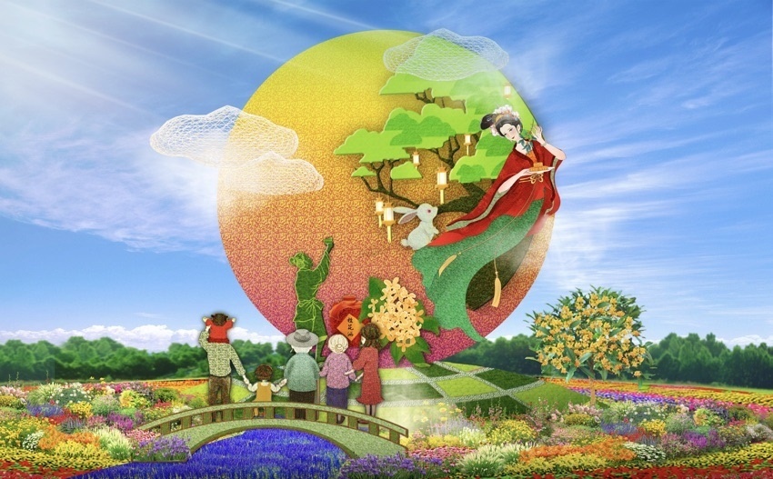 8,西單西北角的“花好月圓”花壇頂高8米,以一家人中秋團聚的溫馨畫面為場景,體現(xiàn)了花好月圓下百姓幸福生活。