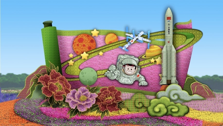 10,復興門東北角的“筑夢未來”花壇頂高8.5米,以中國航天員、空間站為主景,寓意航天強國建設蓬勃發(fā)展,助力中國夢早日實現(xiàn),全面推進中華民族偉大復興,譜寫新時代中國特色社會主義更加絢麗的華章。