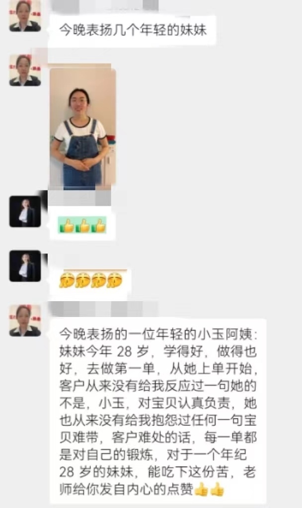 兩年間,由于月嫂、育兒嫂需要24小時在客戶家工作,育兒觀念不同、生活習(xí)慣不同、與家庭成員之間的摩擦等原因,蔣女士最終找到了一位合適的育兒嫂,“年輕人不愛八卦,定外賣、打車都熟練,育兒觀念新,活力十足,孩子也很喜歡她。”