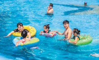 7月1日,游客在河北省遵化市娘娘莊鎮(zhèn)水上樂(lè)園戲水避暑。劉滿(mǎn)倉(cāng)攝(人民圖片)