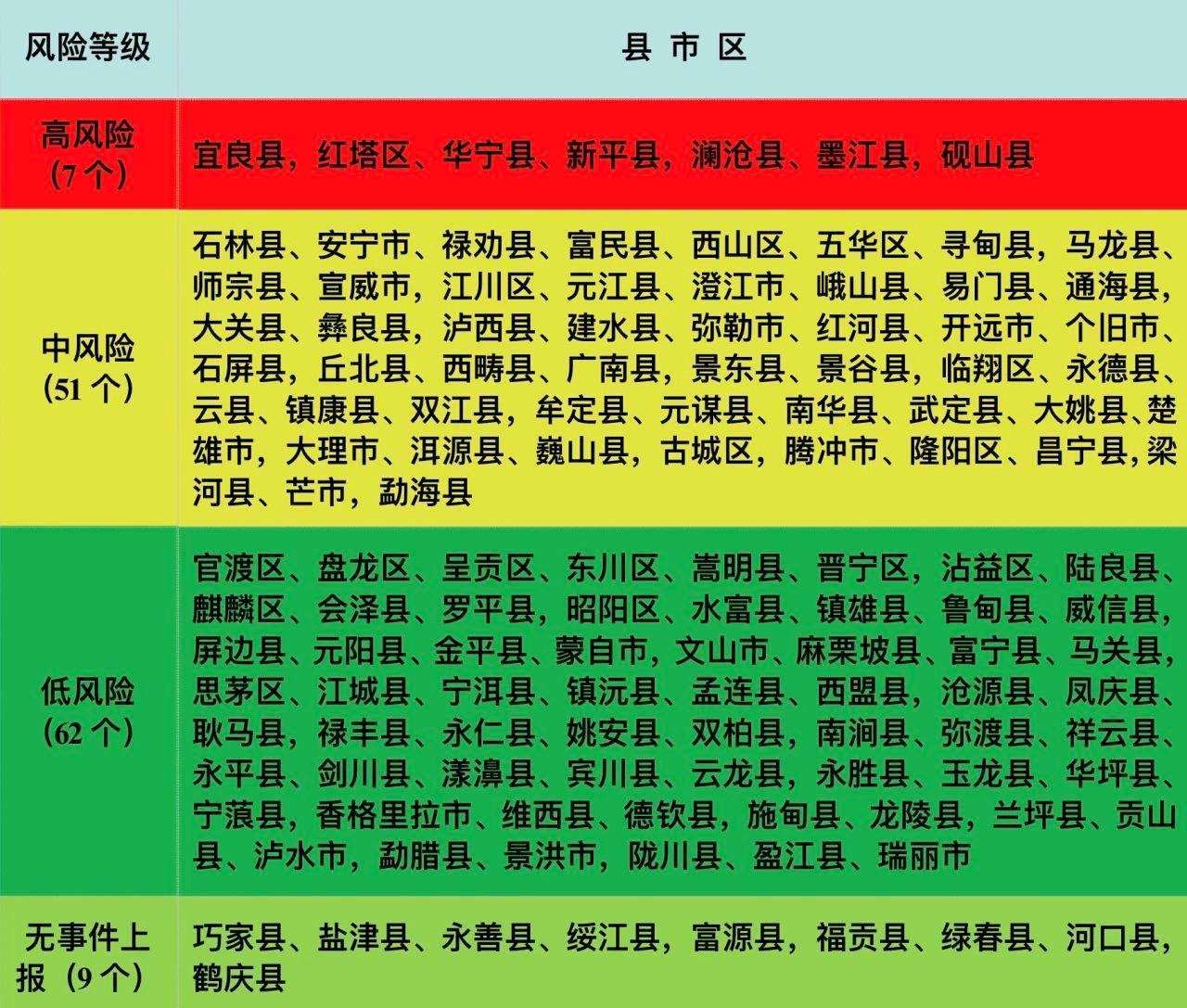 為切實維護廣大人民群眾身體健康和生命健康,有效減少有毒野生菌中毒事件發(fā)生,云南省依據2020—2022年全省野生菌中毒數據并結合各地有毒野生菌種類(重點關注中毒致死的野生菌亞稀褶紅菇,劇毒鵝膏類等),將云南所轄129個縣(市、區(qū))野生菌中毒風險分為高、中、低三個等級,累計中毒事件起數≥100起或死亡人數≥3人的地區(qū)劃定為高風險地區(qū),累計中毒事件起數為30—99起或死亡人數為1—2人的地區(qū)劃定為中風險地區(qū),累計中毒事件起數<30起且無死亡的地區(qū)劃定為低風險地區(qū),繪制了《2023年云南省有毒野生菌中毒風險分級地圖》《2023年云南省有毒野生菌中毒風險分級表》。