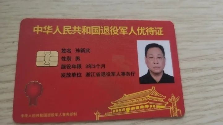 孫新武的退役軍人優(yōu)待證。浙江省紅十字會供圖
