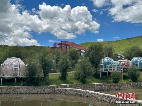 近年來(lái),紅原縣牦?,F(xiàn)代農(nóng)業(yè)園區(qū)堅(jiān)持牧旅融合發(fā)展,如今,供游客休閑的咖啡屋、星空房等設(shè)施正在如火如荼地建設(shè)中。圖為園區(qū)打造的星空房。