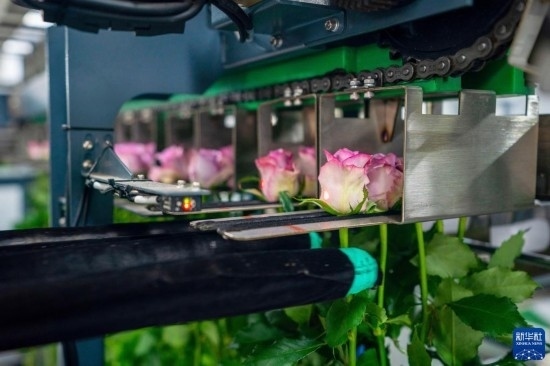 清晨,在云南省昆明市晉寧區(qū)云天化晉寧花卉產(chǎn)業(yè)現(xiàn)代化示范園內(nèi),品類各異的鮮花競(jìng)相綻放,花農(nóng)們?cè)诂F(xiàn)代化大棚里忙著采摘、搬運(yùn)。云天化晉寧花卉產(chǎn)業(yè)現(xiàn)代化示范園是集育苗、智能溫室大棚、水肥一體化、無土綠色栽培、全程數(shù)字化管理系統(tǒng),以及鮮切花采后處理、預(yù)冷儲(chǔ)藏等為一體的高標(biāo)準(zhǔn)設(shè)施農(nóng)業(yè)產(chǎn)業(yè)園區(qū),年產(chǎn)鮮切花1.6億枝。