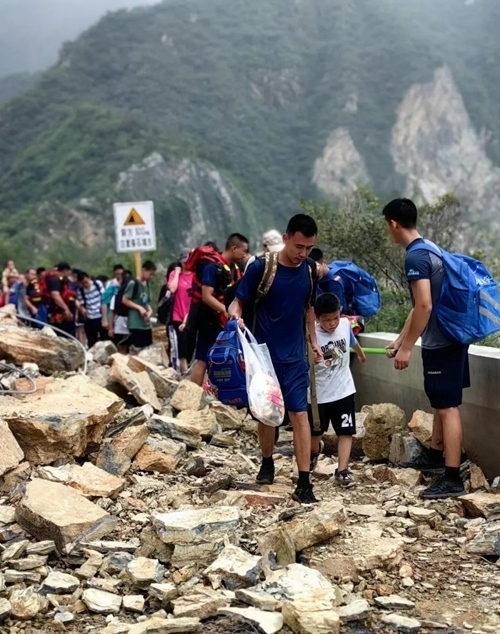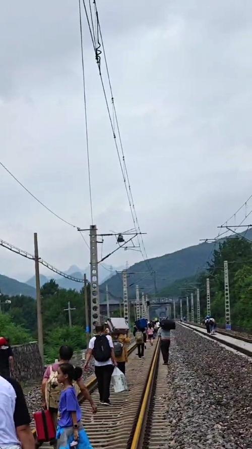聽(tīng)探過(guò)路的乘客說(shuō),目前有公路、鐵軌、山路這3個(gè)方向,軌道上的淤泥已經(jīng)能沒(méi)到膝蓋,山上破碎的石頭很鋒利、容易劃傷。他們決定沿著109國(guó)道走。