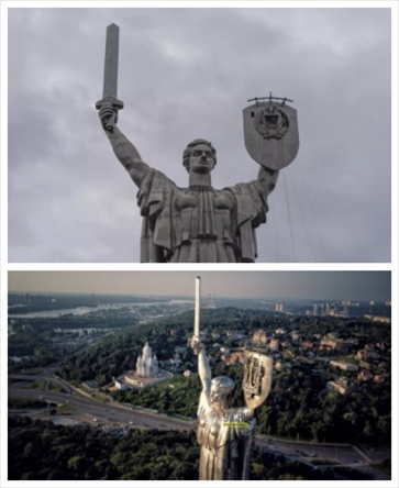 ·烏媒:基輔“祖國(guó)母親”雕像上的蘇聯(lián)國(guó)徽已更換為三叉戟。