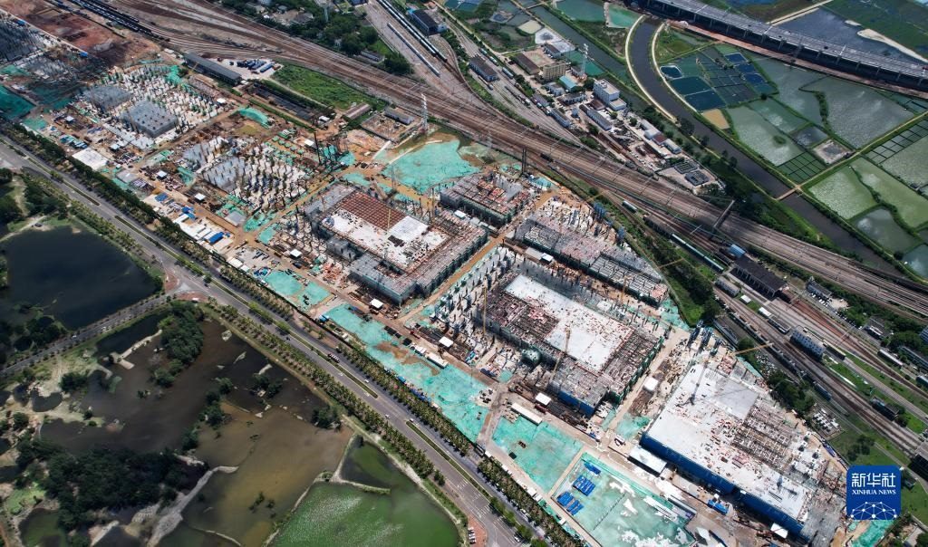海口新海港和南港“二線口岸”(貨運(yùn))集中查驗(yàn)場所建設(shè)項(xiàng)目(7月21日攝,無人機(jī)照片)。