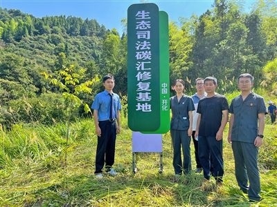 衢州市首個生態(tài)司法碳匯修復基地在開化縣揭牌。徐晰玙 攝