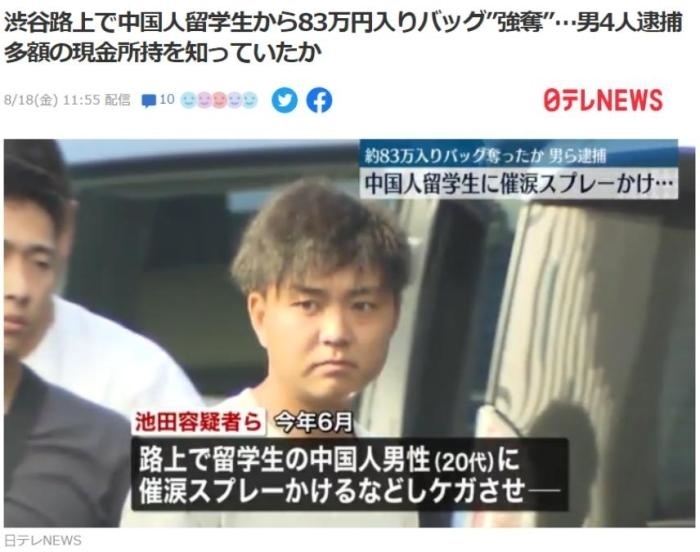 ·在東京搶劫中國(guó)留學(xué)生的嫌犯落網(wǎng),搶劫金額超4萬元。