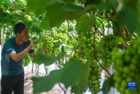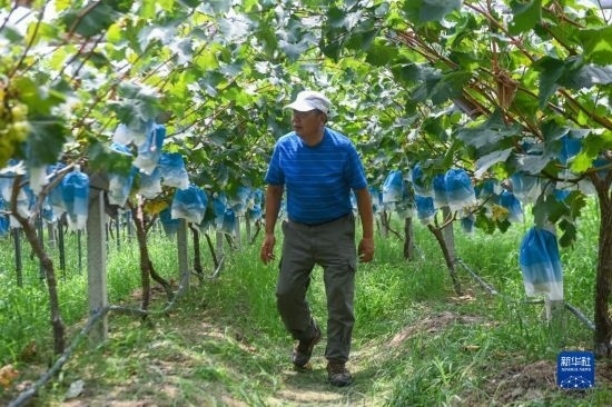 8月20日,在諸暨市姚江鎮(zhèn)紫草塢村阿群家庭農(nóng)場的葡萄大棚內(nèi),種植戶壽怒濤查看葡萄的成熟度。壽怒濤通過農(nóng)技培訓學習葡萄種植新技術,提高葡萄的口感和產(chǎn)量。