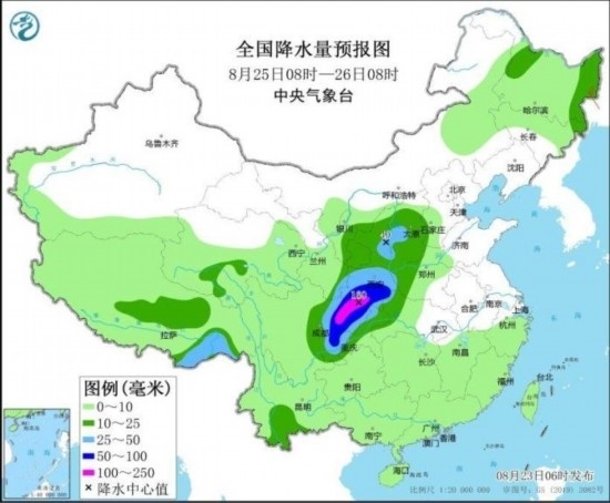 全國降水量預(yù)報(bào)圖(8月25日08時(shí)-26日08時(shí))