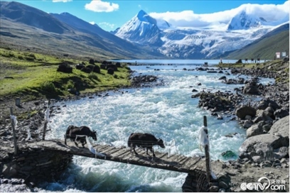 在西藏那曲市比如縣境內(nèi)的薩普雪山,藍天、雪山、湖泊構(gòu)成一幅美麗的生態(tài)畫卷。