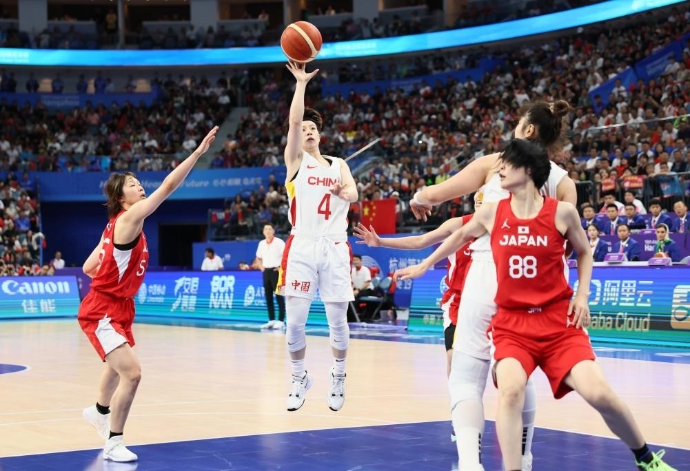 決賽開場,兩隊球員都略顯緊張,中國隊幾次中投失手,日本隊數(shù)次快攻也未能建功。依靠韓旭在內(nèi)線的牽制,黃思靜連續(xù)命中2記遠(yuǎn)投,李夢突破打成“2+1”,中國隊打出17:7的開局。面對身材更高大的中國姑娘,日本球員通過不斷突破傳球創(chuàng)造得分機(jī)會。首節(jié),中國隊26:16領(lǐng)先對手。