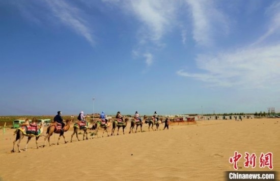 沙漠騎駱駝是沙漠之門景區(qū)眾多游玩項目中最受歡迎的項目之一。 翟麗瑩 攝
