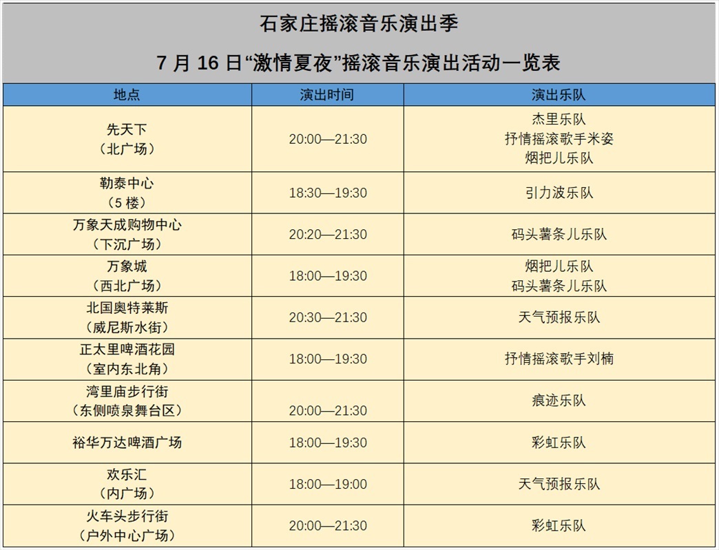 當(dāng)?shù)孛襟w早前報(bào)道稱,9月16日至24日,由河北省商務(wù)廳、石家莊市人民政府聯(lián)合主辦的河北·澳門美食音樂消費(fèi)節(jié)暨河北金秋消費(fèi)季活動(dòng)在石家莊舉辦。活動(dòng)共包含特色美食節(jié)、音樂休閑節(jié)、激情購物節(jié)三個(gè)板塊。其中,音樂休閑節(jié)于每天18時(shí)30分至22時(shí)30分在石家莊正太廣場舉辦。十余位歌手、6支樂隊(duì)帶來精彩的音樂演出,豐富市民游客文化體驗(yàn),演出曲目風(fēng)格包含搖滾、民謠、爵士、抒情等。