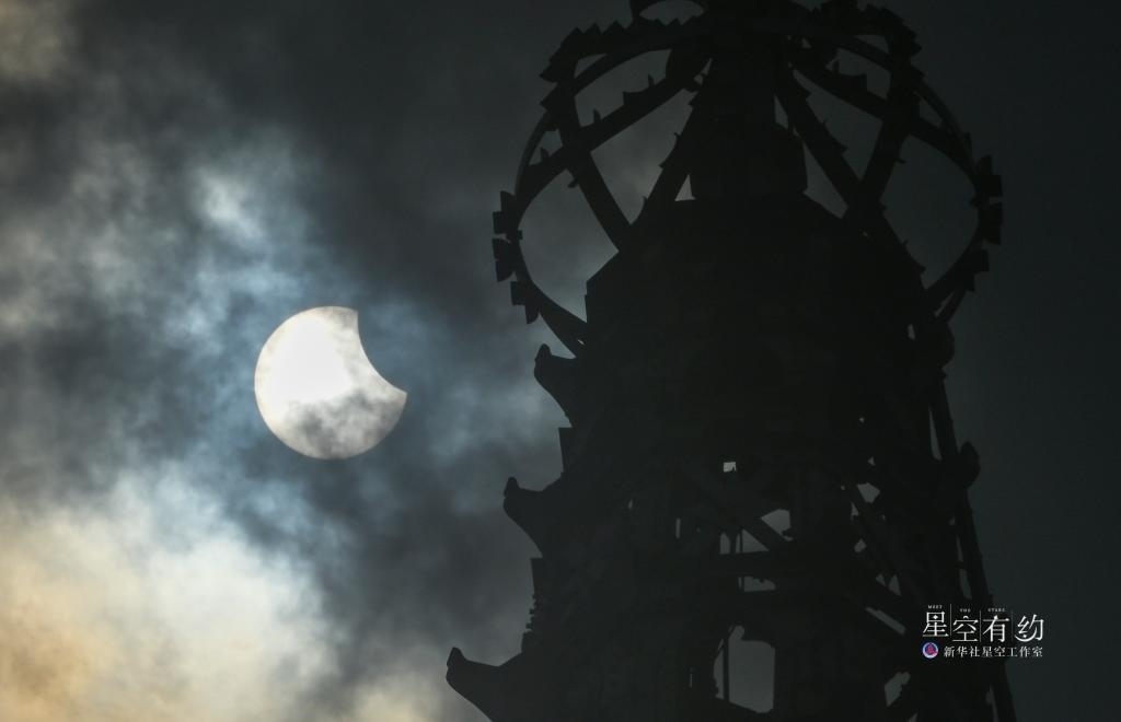 2020年6月21日在印度高哈蒂拍攝的日食景象。(新華社發(fā))