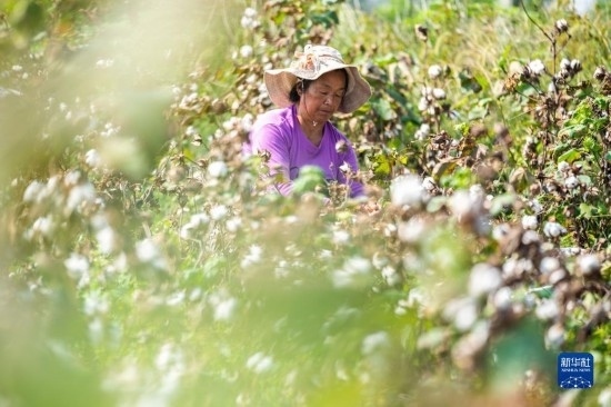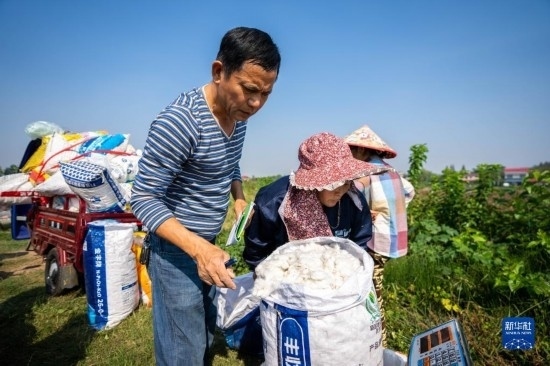 金秋十月,湖南省益陽(yáng)市南縣種植的4萬(wàn)余畝棉花相繼進(jìn)入采收季,當(dāng)?shù)孛揶r(nóng)趁著晴好天氣采摘棉花,田間地頭一片忙碌的景象。