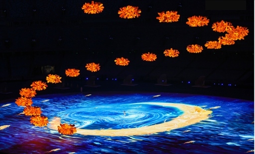 今晚的“大蓮花”,處處見(jiàn)桂花,時(shí)時(shí)聞得到桂花香。一朵“金桂之花”到22組金桂花團(tuán),從分散到匯聚,時(shí)而形成流水,時(shí)而形成拱橋,最終將在空中形成巨大的“金桂花冠”,向每一位運(yùn)動(dòng)員傳遞“逐夢(mèng)折桂”的美好寓意。