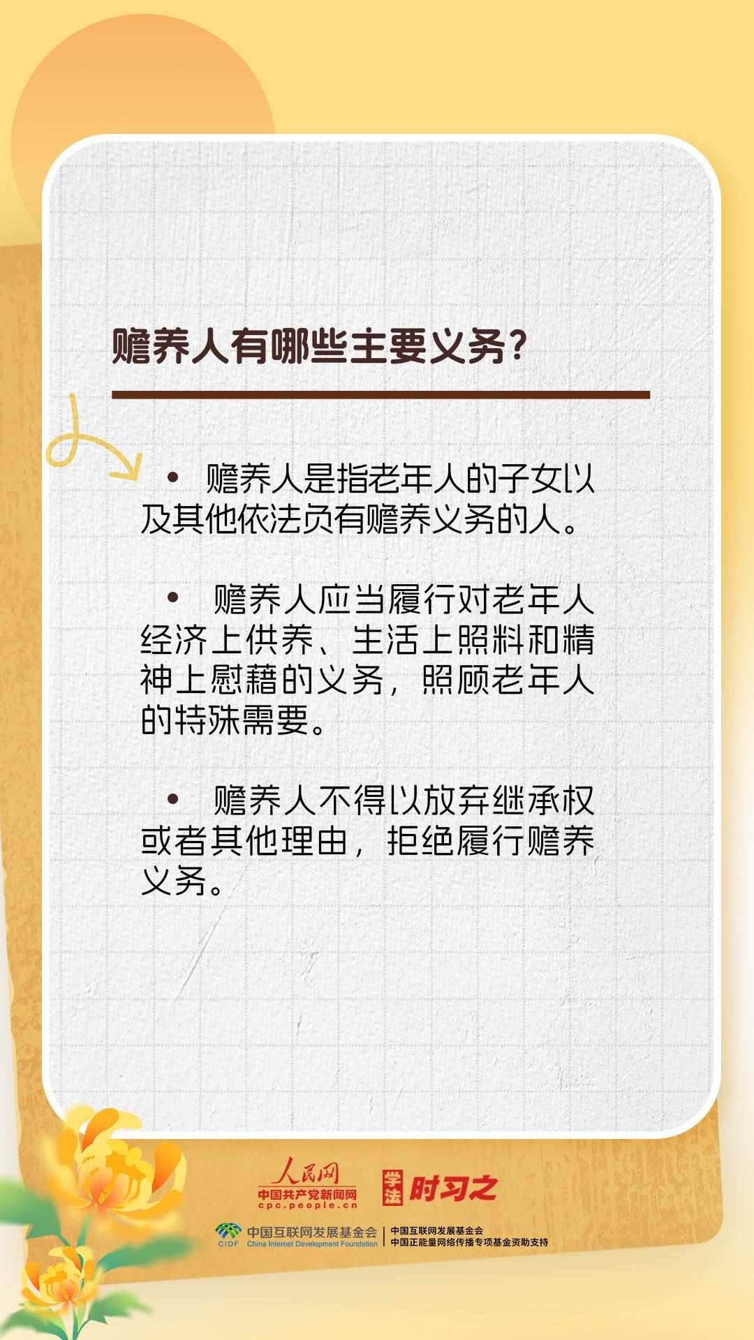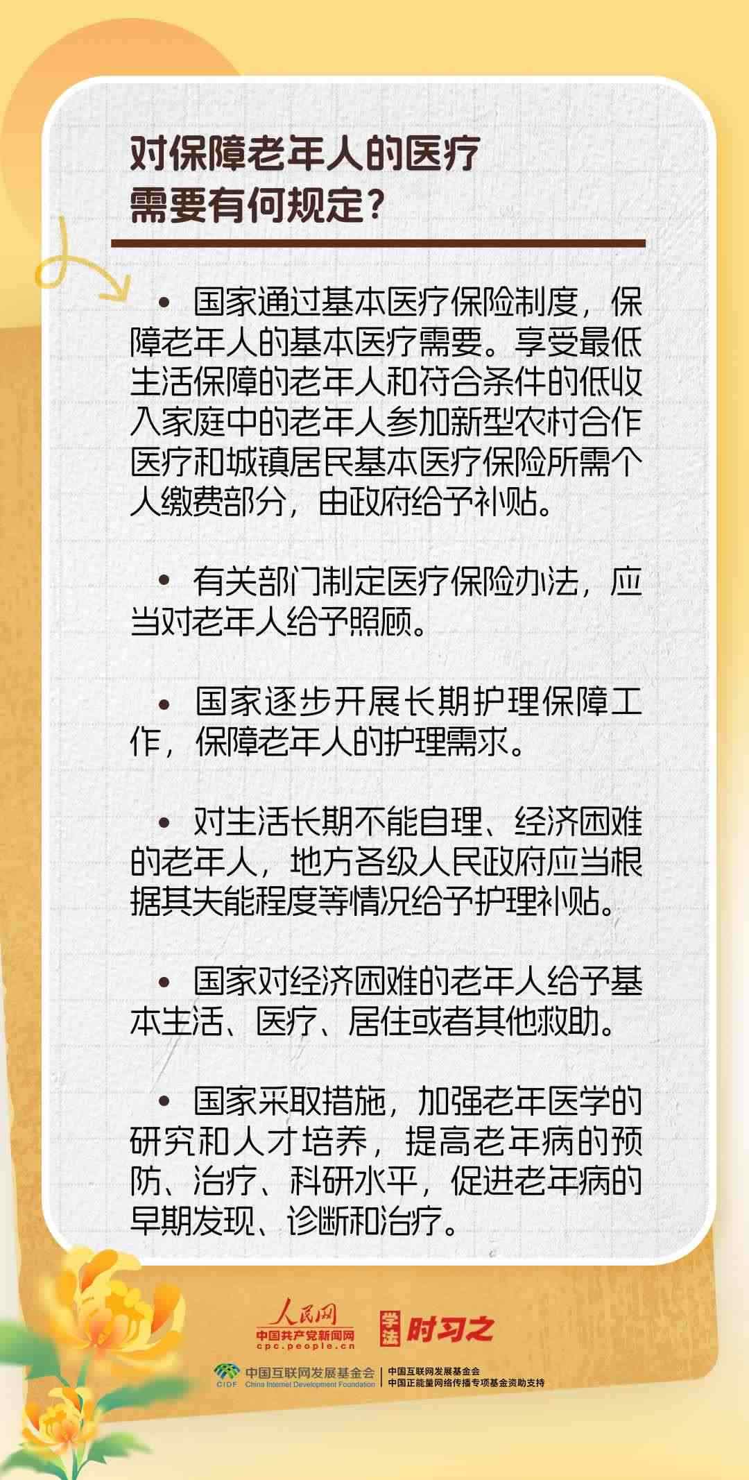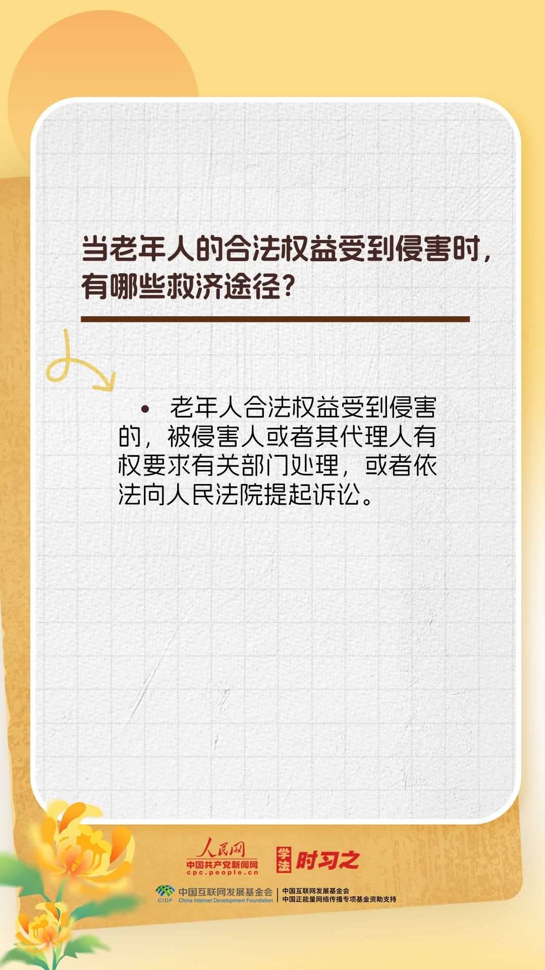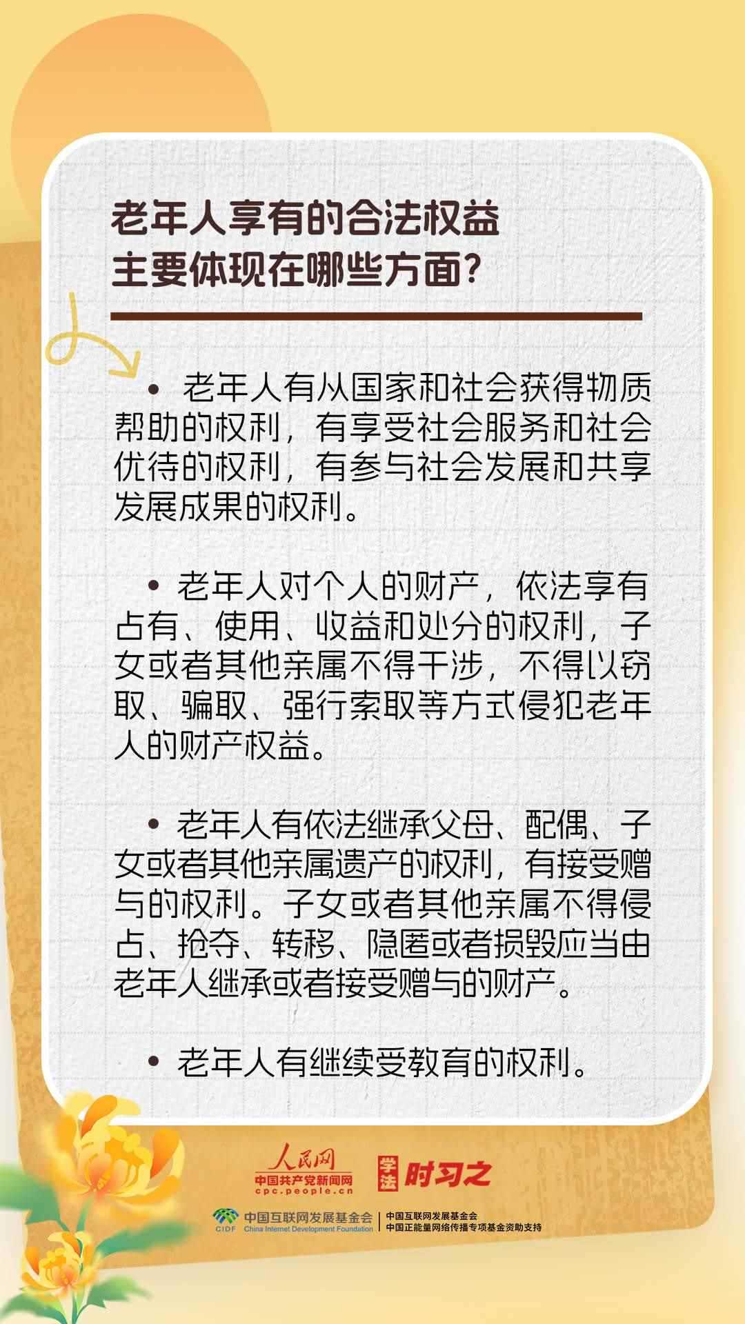 《中華人民共和國(guó)老年人權(quán)益保障法》的出臺(tái)進(jìn)一步保障了老年人的合法權(quán)益,弘揚(yáng)了中華民族敬老、養(yǎng)老、助老的美德。重陽節(jié),一起來了解老年人權(quán)益保障法的相關(guān)規(guī)定。