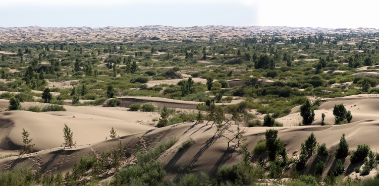 河西走廊-塔克拉瑪干沙漠邊緣是“一帶一路”倡議的重要戰(zhàn)略通道,區(qū)域風(fēng)大沙多,植被稀疏,是北方主要沙塵源區(qū)?!叭薄惫こ倘髴?zhàn)役進(jìn)入實(shí)戰(zhàn)階段以來(lái),億利庫(kù)布其治沙模式技術(shù)的推廣落地在河西走廊-塔克拉瑪干沙漠邊緣阻擊戰(zhàn)中也跑出了加速度。