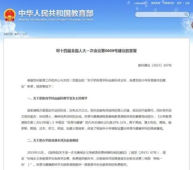 ·體育由副科變主科?教育部答復代表:無主次之分。