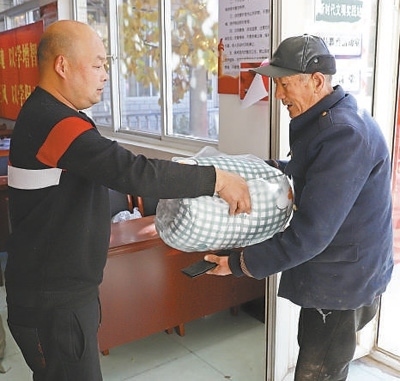 上午10時(shí),走進(jìn)碼頭村黨群服務(wù)中心,正碰上73歲老人杜金亭騎著電動三輪車,載著老伴來領(lǐng)新棉被。為保障困難群眾冬季取暖,涿州市民政局為全市殘疾人、“六類人群”免費(fèi)發(fā)放過冬棉被。杜金亭的老伴肢體殘疾,是低保戶。“新房配上新棉被,這個(gè)冬天不愁了!”取上新棉被,杜金亭邀請記者去新家看一看。