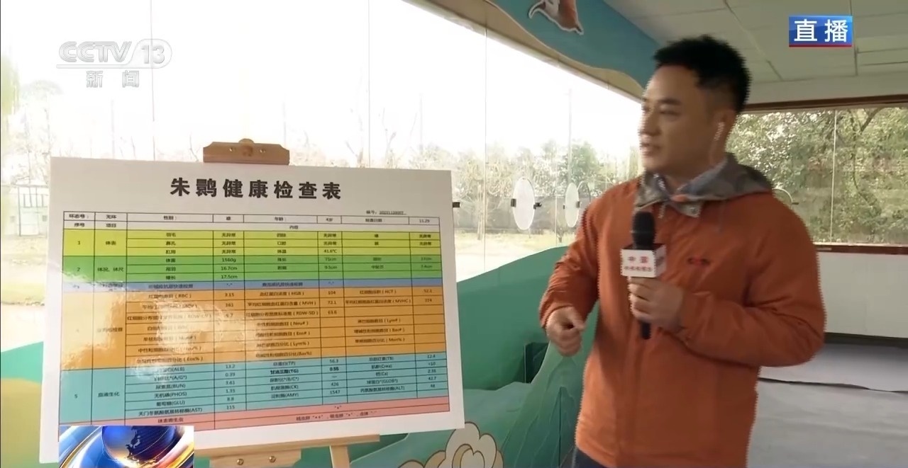 另一邊,保健醫(yī)生們正在給朱鹮抽血。完成抽血之后,朱鹮的血樣會通過機(jī)器完成血常規(guī)、生化指標(biāo)和寄生蟲檢測等50多項檢查,最終形成一張健康檢查表,相當(dāng)于我們的體檢。這樣精確的健康監(jiān)測,就是保證朱鹮種源質(zhì)量的依據(jù)。