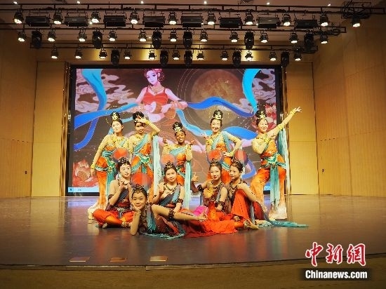 圖為萊索托留學(xué)生茉莉(后排中)及同學(xué)受邀前往山東表演敦煌舞。受訪者供圖