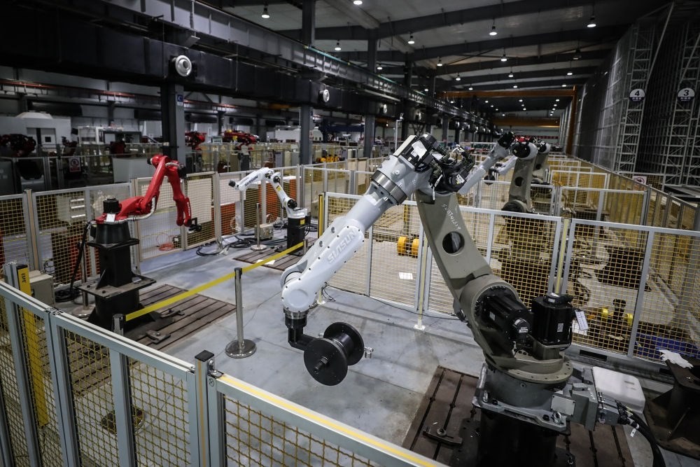 這是沈陽(yáng)新松機(jī)器人自動(dòng)化股份有限公司生產(chǎn)車間(2022年4月28日攝)。新華社記者 潘昱龍 攝