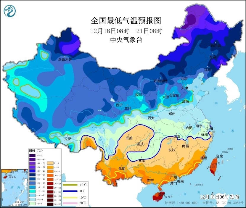 人民網(wǎng)北京12月18日電 (記者溫璐)據(jù)中央氣象臺(tái)網(wǎng)站消息,未來五天,我國(guó)大部地區(qū)氣溫持續(xù)偏低。預(yù)計(jì)12月18日8時(shí)至21日8時(shí),新疆北部、西北地區(qū)中東部、內(nèi)蒙古、華北地區(qū)、東北地區(qū)、黃淮、江淮、江漢、江南北部、貴州等地部分地區(qū)日最低氣溫較歷史同期偏低5℃以上,其中西北地區(qū)東部、內(nèi)蒙古、華北地區(qū)、東北地區(qū)、黃淮中東部、江淮東部等地部分地區(qū)日最低氣溫較歷史同期偏低7℃以上,最低氣溫0℃線將位于貴州南部至江南北部一帶。中央氣象臺(tái)12月18日6時(shí)繼續(xù)發(fā)布低溫黃色預(yù)警。