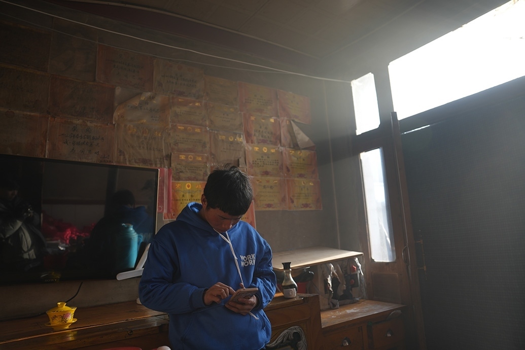 12月23日中午,他坐在炕上,邊聽網(wǎng)課邊做筆記,眼神專注,黝黑的臉上透著高原紅,因為壓力太大還冒了幾顆痘痘。