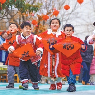 江蘇宿遷市幼兒園舉辦“迎新年·趕大集”文化活動。陳少帥攝(人民視覺)