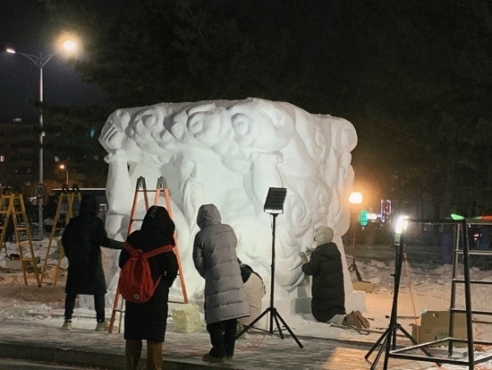 能夠與冰雪“親密接觸”,中國美術(shù)學(xué)院的熊竣苓要感謝剛剛在哈爾濱落幕的第十六屆國際大學(xué)生雪雕大賽。他所在的團(tuán)隊(duì)由包括他在內(nèi)的4位南方同學(xué)組成,他們創(chuàng)作的雪雕作品《盤古開天》獲得了一等獎(jiǎng)。這段比賽經(jīng)歷讓第一次去哈爾濱的熊竣苓非常難忘,“最近哈爾濱很火,雖然我是去參加比賽的,但能去哈爾濱一趟,也非常激動(dòng)了。我記得我們從機(jī)場到酒店的路上,透過車窗看到了霧凇,一下子就讓我這個(gè)南方人感受到了北方冬天的美?!彼貞洠鲅┑駮r(shí),他和另外3位同學(xué)都既緊張又興奮,“我們都是第一次觸摸雪做雕塑,此前在學(xué)校練習(xí)時(shí)是用泥巴或石膏,跟雪是完全不同的質(zhì)感,所以過程中我們都小心翼翼,非常緊張;同時(shí),我們都是第一次見到這么多雪,太激動(dòng)了?!?/p>